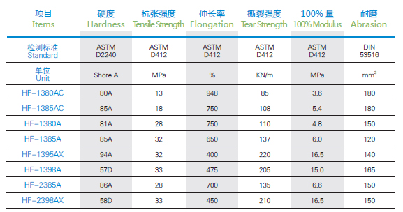 基于不同芳香族和脂肪族的原料特点,华峰TPU产品能够适用消费和工业领域的不同需求,并且可以按着不同的需求在不同的机台上进行操作。