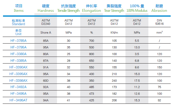 华峰此系列产品具有优异的物理性能、力学性能、和环保性能,优异的加工性能、挤出稳定性及优异的耐寒和耐热性能等特点,主要应用于薄膜、气垫、管材和超薄薄膜等。